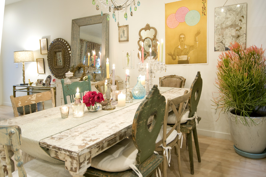 An enormous selection of glassware, mirrors, cake stands, candlesticks, artwork and distressed furniture fills the Abbott-Kinney shop.