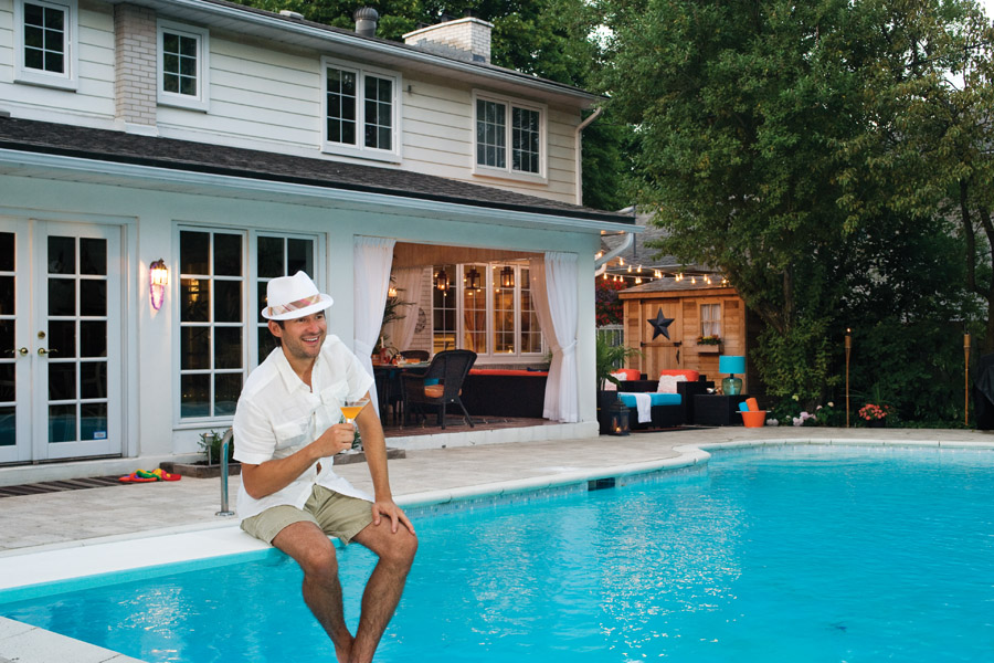 At dusk….that’s when this newly transformed backyard looks its starlit best. How fitting, since the house in question belongs to crooner and jazz vocalist Matt Dusk.