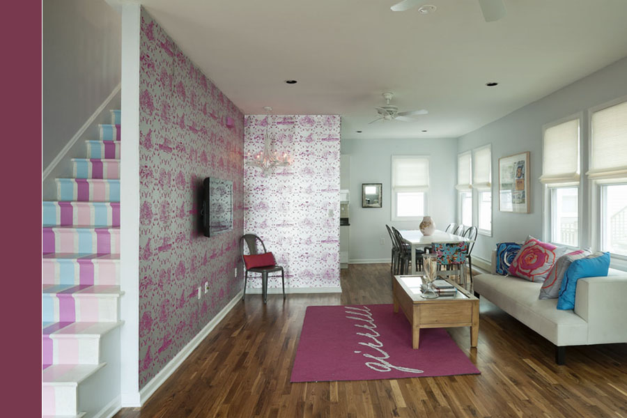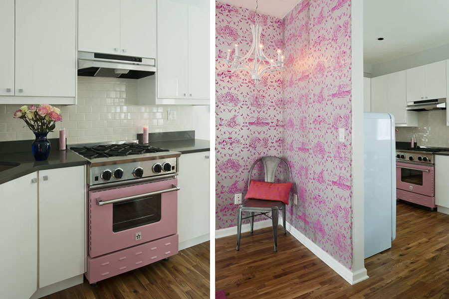 The siblings asked the designers to create a distinct home where they could entertain friends and family in comfort. The Novogratz’s quickly saw an opportunity to inject colour, personality and most importantly, functionality into the home. Using the sisters’ admiration for Betsy Johnson as a jumping-off place, Bob and Cortney harnessed the colour pink and brought their dreams to life.