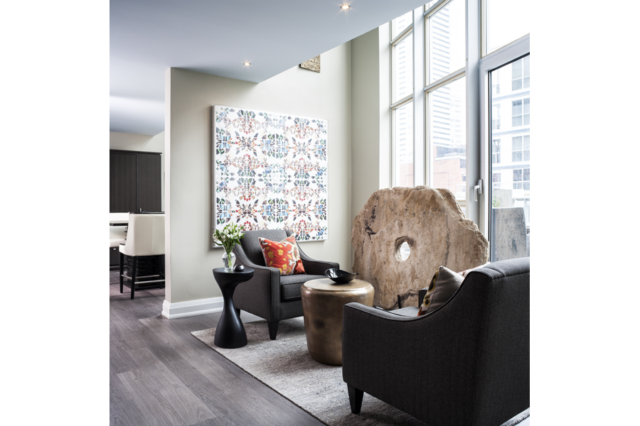 Easier said than done when you have challenging spaces to decorate—like the pie-shaped entry hall that greets you as you enter the front door of this urban condo.
