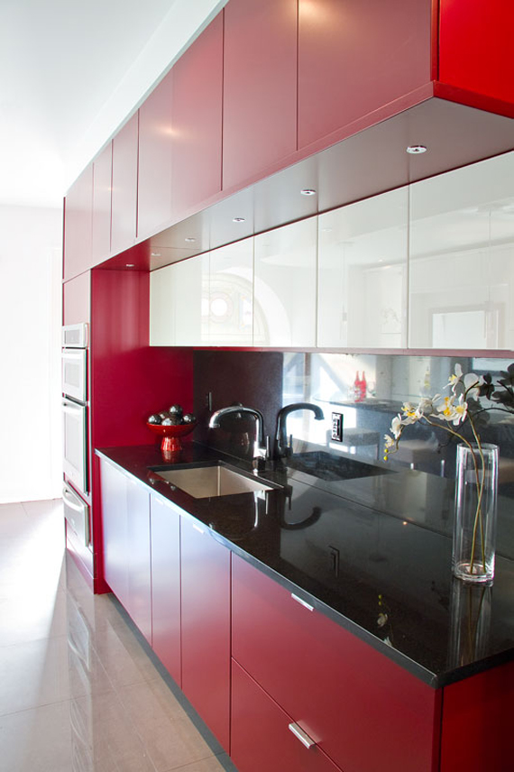 White may be the most popular choice for kitchen cabinets but it’s far from the only choice. Why not cut loose and show some real personality with a bold choice like this red?