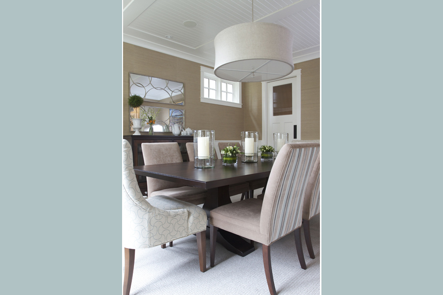 • Dining Chairs custom through Elle Design, fabrics by JF fabrics and Kravet. Dining Table and Sideboard custom through Modern Country Interiors. Lighting custom Zia Priven light through Stonegate Designs. Mirror Chintz & Co.