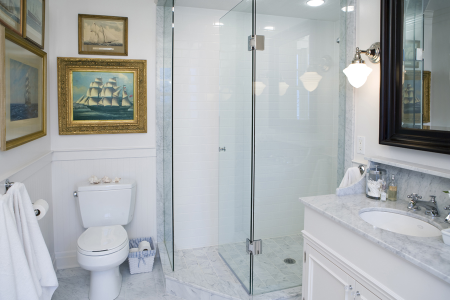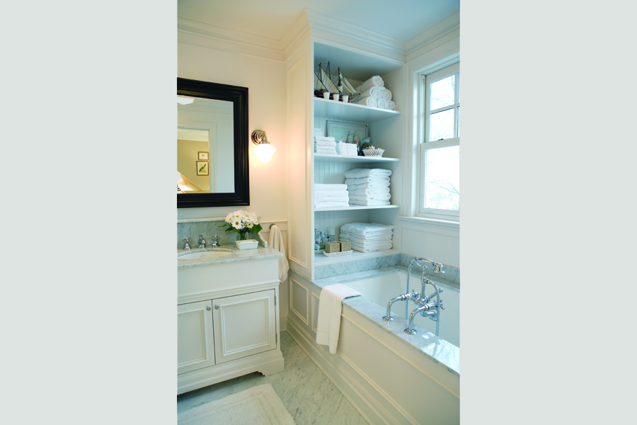 • In the ensuite, Bianco Carerra marble optimizes light and offers an easy-to-live-with surface that ages gracefully.