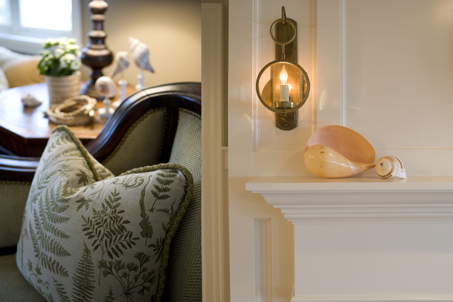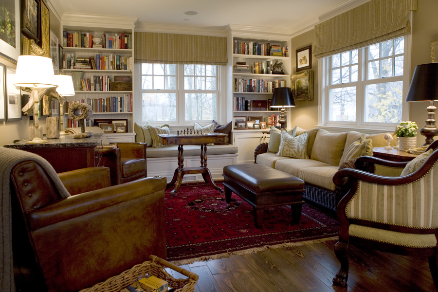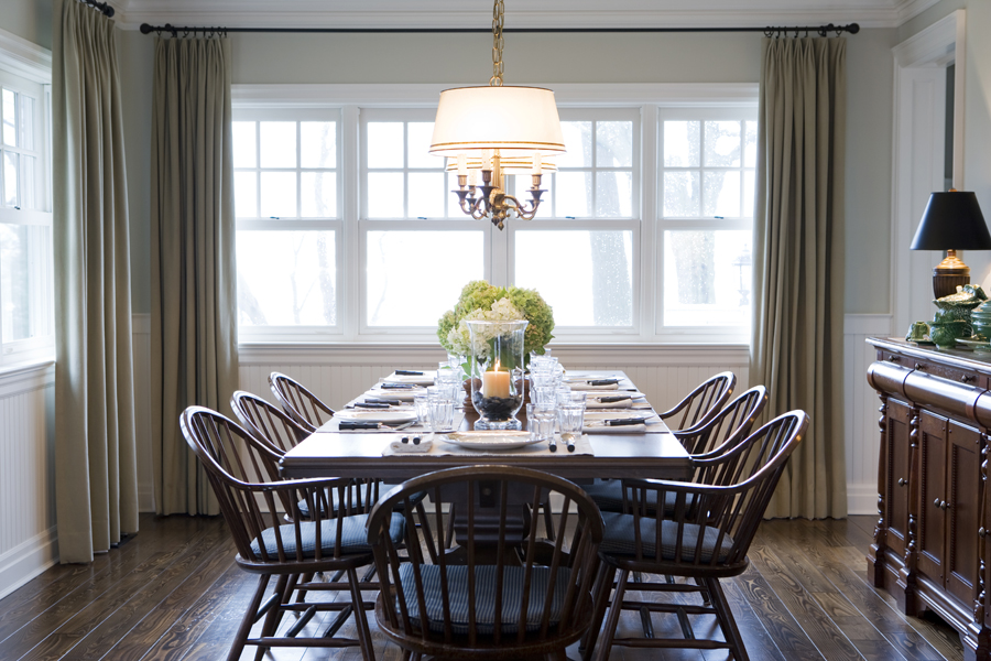 • The linen window treatments from Kravet play a dual role: they cool the air in summer by controlling light levels while adding visual and physical warmth during the winter months.
