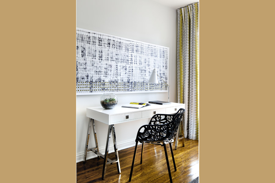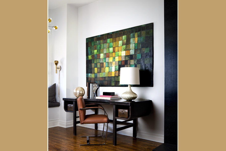 Design Tip: Combine objects d’art with framed pieces for added interest.